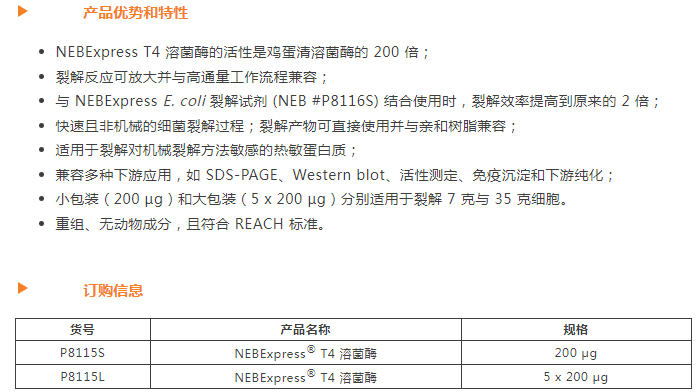 新品發布:NEBExpress? T4 溶菌酶