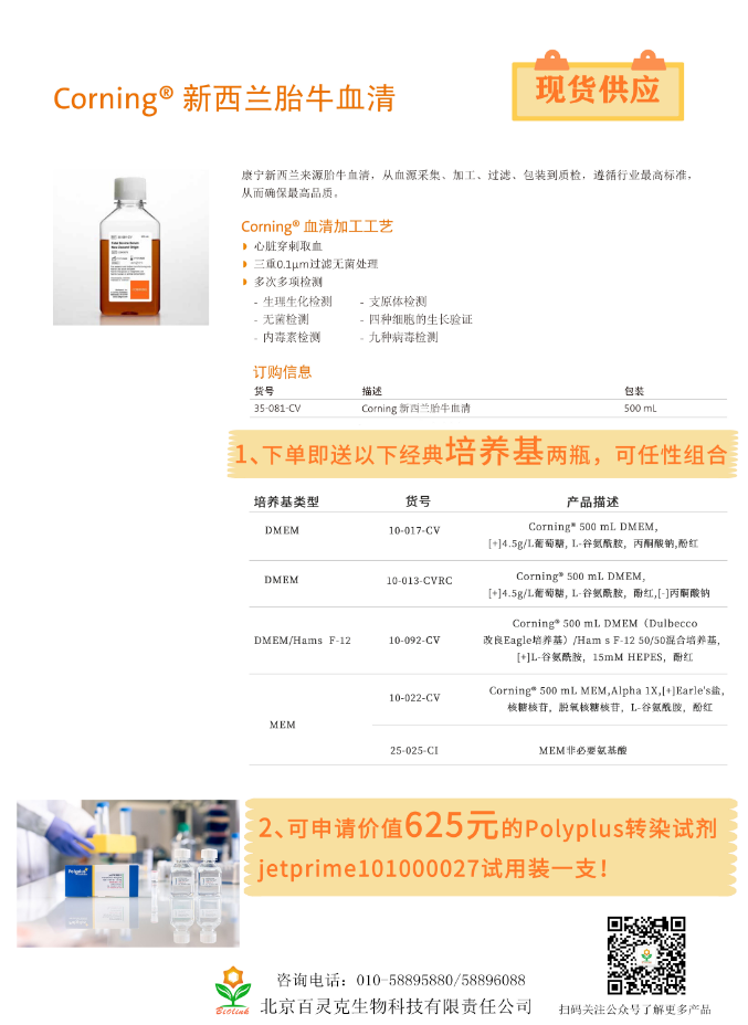 CORNING血清現貨供應,下單可享雙重優惠啦!