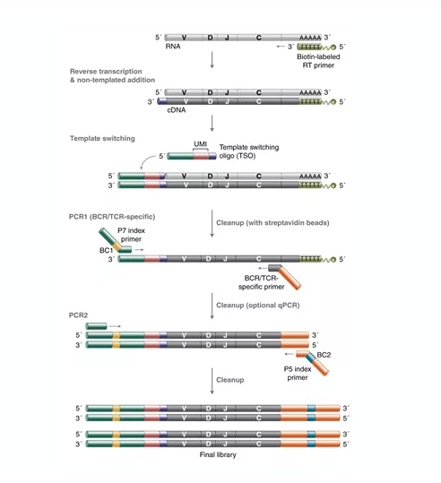 對 B 細胞受體(BCR)和 T 細胞受體(TCR)進行富集和測序