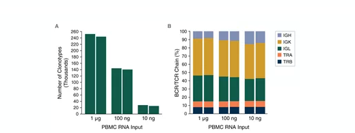 取消可變區域引物的使用,降低了引物池的復雜度,實現了同步無偏差導出 B 細胞和 T 細胞受體轉錄本數據。