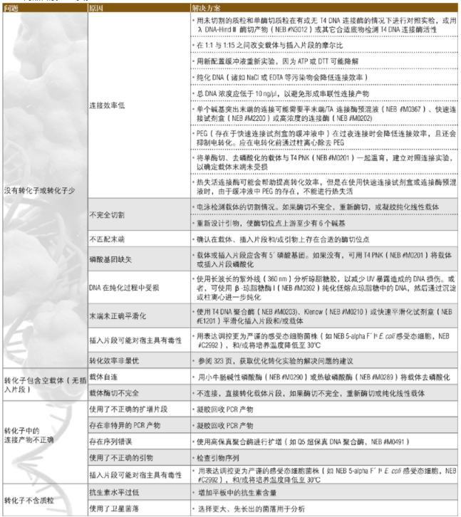 下面的指南可用于解決轉化過程中所出現的問題。關于設計與優化克隆實驗的其它建議見 2013﹒2014