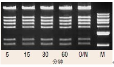1 μl SalI 5 分鐘內消化 1 μg DNA,結果顯示長時間酶切或過夜 (O/N) 消化沒有核酸酶污染。
