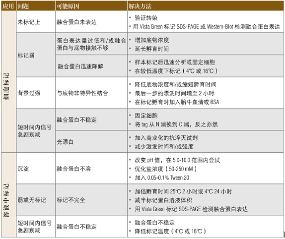 A.SNAP-tag 標記反應可在多種緩沖液中進行。選擇何種緩沖液取決于被融合蛋白的要求。下面是推薦的緩沖液選擇指南:pH 5.0-10.0,單價鹽(如 NaCl)50 mM-250 mM,以及至少 1 mM 的 DTT。如果需要可加入 0.5%v/v 的非離子型變性劑,但是應絕對避免使用 SDS 和其它離子變性劑,因為它們會抑制 SNAP-tag 的活性。金屬離子螯合劑(如 EDTA 和 EGTA)同樣會抑制 SNAP-tag 的活性,因此也不能使用。