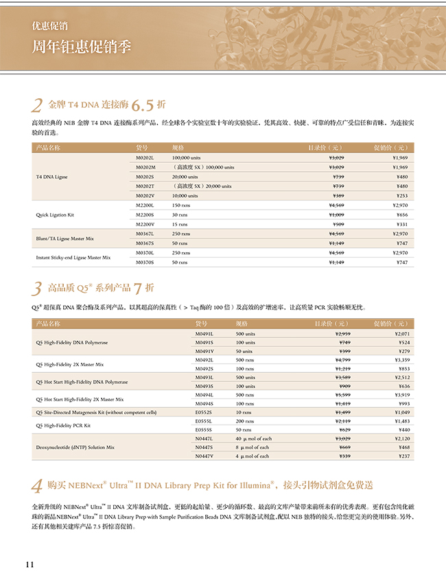 4. 購買 NEBNext? Ultra? II DNA Library Prep Kit for Illumina?,接頭引物試劑盒免費送
