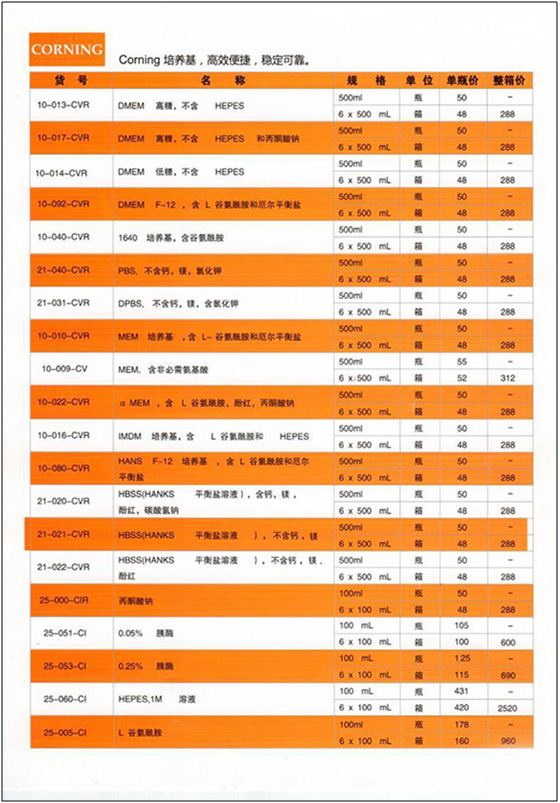 Corning Cellgra培養(yǎng)基2016年促銷(xiāo)